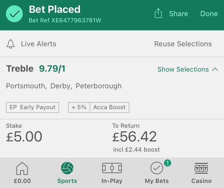 BeeversLeftPeg Posted April 10, 2024 Posted April 10, 2024 Bolton, Orient, Oxford treble for weekend is 35/1. BOO Quote