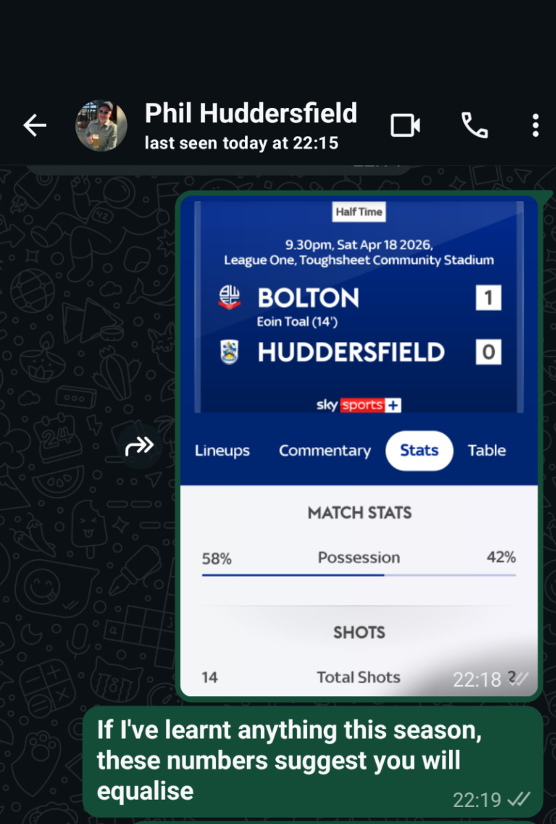 Zico Posted Saturday at 12:48 Posted Saturday at 12:48 Sent to a Huddersfield mate at half time Quote