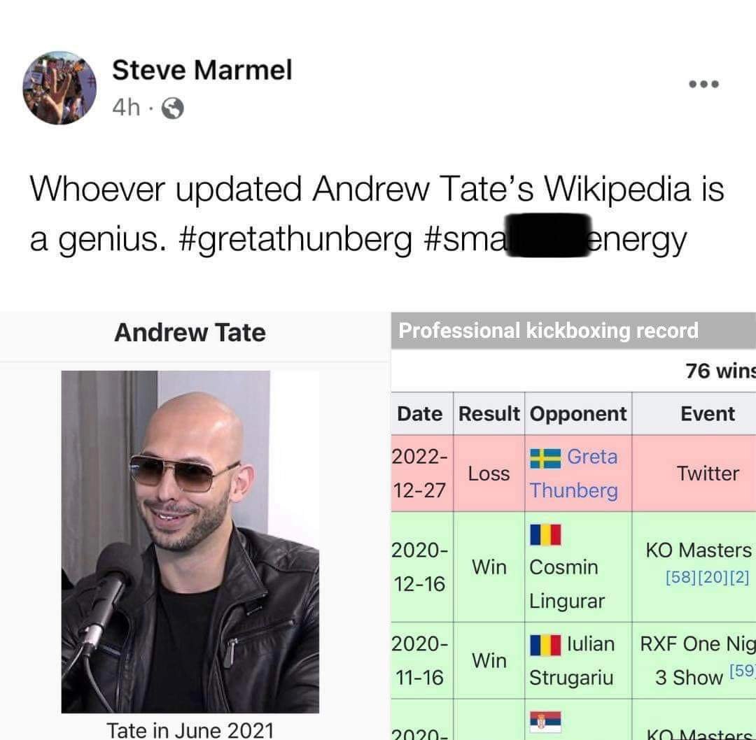 DazBob Posted December 30, 2022 Posted December 30, 2022 1 hour ago, London Wanderer said: Even Bolty wouldn’t defend Andrew Tate He annoys Thunberg so I'd not rule it out. Quote