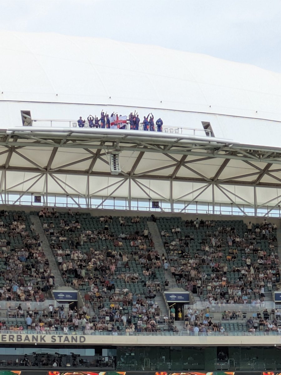 farnworth white Posted December 17, 2025 Posted December 17, 2025 (edited) Got to keep believing. Yes, they’ve got runs on the board but we do need 2 quick wickets then bat for 2 days to get some kind of lead. Lyon could be key for them today, he is the leading test wicket taker at this ground. Forecast 40 degrees today so that should test the likes of Starc and Cummins. Important to initially get through Starcs first over and hopefully some of the batters have learned from the mistakes from the first 2 tests. Saw quite a few at the game from Bolton yesterday. Bumped into Bobby Brno and his lad in a bar in the city after the game. Highest ever attendance for a cricket match at the Adelaide Oval, 56,298. Edited December 17, 2025 by farnworth white Quote
